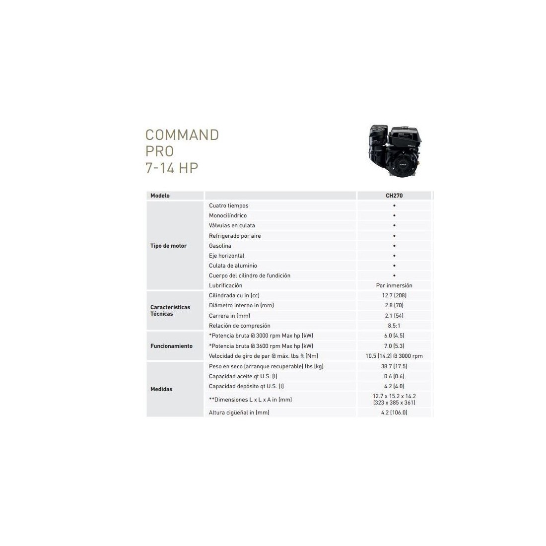 Motor Kohler CH270 cigueñal 19.04mm